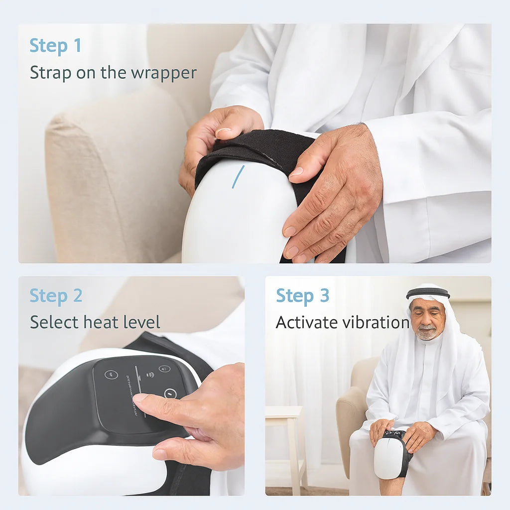 الاهتزاز مع الحرارة يعطي راحة فورية. أستخدمه بعد الدوام ويخفف توتر الركبة كثير